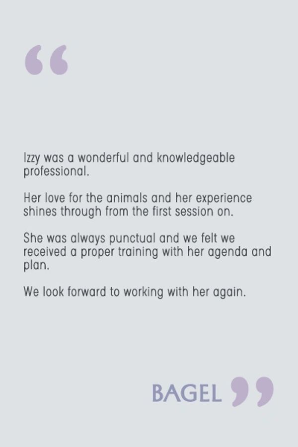 We avoid the use of aversives in our training sessions. Instead, we focus on reinforcing positive behaviors to encourage desired outcomes. We also recognize that trainers should not advise on problems outside the recognized boundaries of their competencies and experience and will counsel you accordingly.