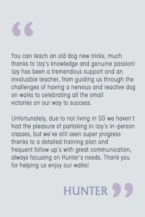 Tail Tips is a Project ADORE trainer with SPCA Singapore. This package includes 2 lessons that follow the AVS training plan for dogs that are adopted under the ADORE scheme.