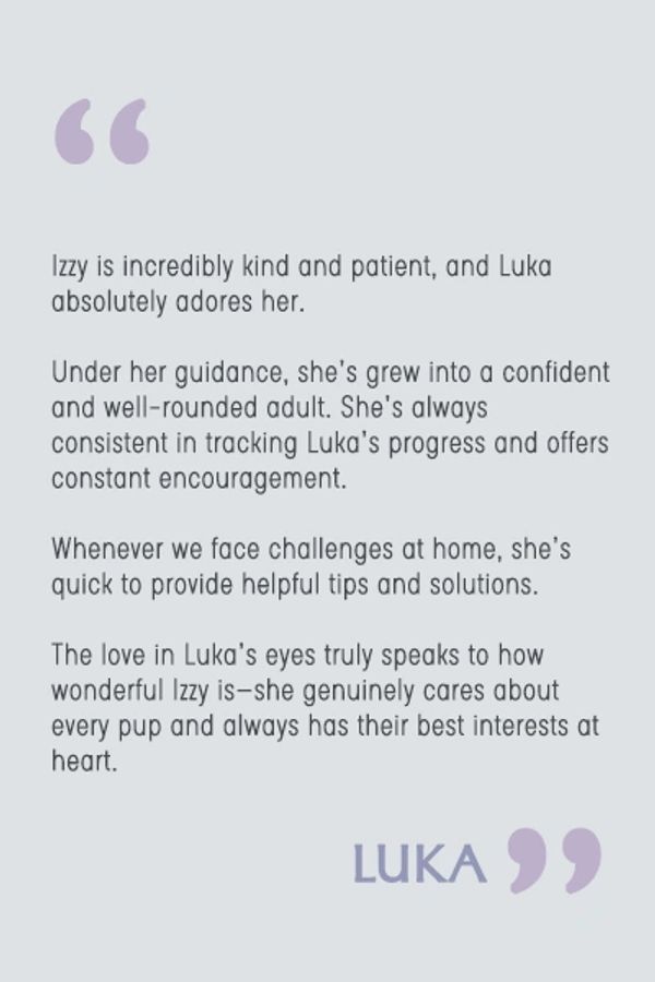 Our trainer is an IAABC Accredited Dog Trainer and Puppy Start Right Instructor, and has focused on training using positive reinforcement techniques. We believe in building confidence, trust, and a strong bond through gentle and effective training methods for dogs of all breeds and ages